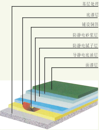 | 面漆層 | 用導(dǎo)靜電自流平鏝刮一遍,用消泡滾筒消泡 | 導(dǎo)靜電自流平面漆 | — | 0.8~1.00kg/m2 |